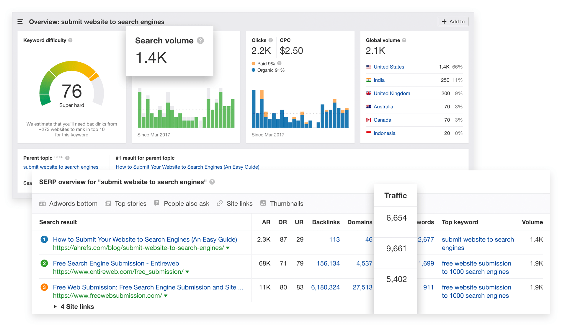 Basit tasarımı ve kolay kullanım sağlayan arayüzüyle Ahrefs kullanımı oldukça basit. Web sitenizi optimize etmek, rakip analizi yapmak, anahtar kelime analizi yapmak, içerik analizi ve sıralama takibi gibi bir çok özelliğiyle Ahrefs stratejik kararlar almanızda ve derinlemesine inceleme yapmanızda en büyük yardımcınız. Facebook, eBay, Tripadvisor, Shopify, LinkedIn, Adobe, Netflix, Uber, Pinterest, Expedia, SurveyMonkey ve Huffpost gibi büyük markaların da pazarlama alanında kullandığı Ahrefs nasıl kullanılır?