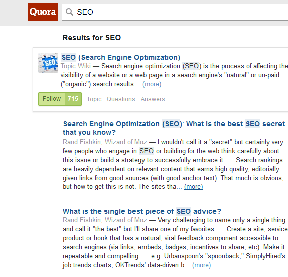 Quora gibi kalteli soru cevap sitelerinde “SEO nedir” diye bir çok başlık bulunmakta.